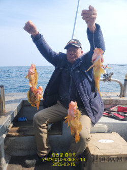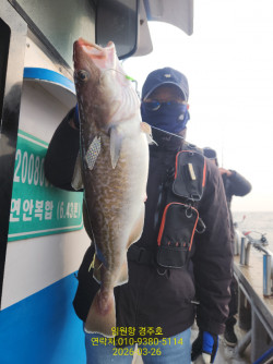 2026.03.27 대구조황입니다냉수때라서 입질이 강하지가 않았네요 *** 삼척 경주호 예약 안내 ***예약문의 : 010-9380-5114오시는길 : 강원도 삼척시 원덕읍 임원항구로 30-11 밴 드 : https://band.us/@jungsik5114 홈페이지 : https://gyeongjuho.sunsang24.com/ 블 러 그 : https://blog.naver.com/jungsik5114
