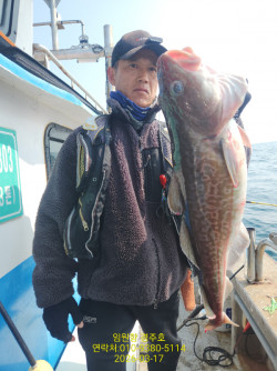 #대구조황 금일 8분모시고 출조를했으나 총7마리 잡고 들어왔습니다.대구가 너무나도 안나오네요조사님들이 철수하자고했어 40분 일찍 절수했습니다.침선에서 잡은 쓸만한 인물사진만 올립니다.금일조사님들 고생하셨습니다. *** 삼척 경주호 예약 안내 ***예약문의 : 010-9380-5114오시는길 : 강원도 삼척시 원덕읍 임원항구로 30-11 밴 드 : https://band.us/@jungsik5114 홈페이지 : https://gyeongjuho.sunsang24.com/ 블 러 그 : https://blog.naver.com/jungsik5114
