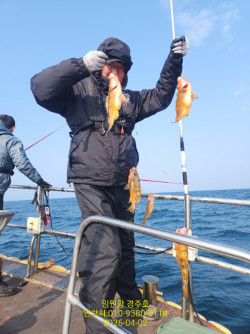 #황열기조황 유속이 강해서 줄날림이 심했어 잡아올리질못했네요유속이 1.9노트까지 배가 밀였네요 마리수가 안나와서 고생좀했습니다.금일조사님들 고생하셨습니다 *** 삼척 경주호 예약 안내 ***예약문의 : 010-9380-5114오시는길 : 강원도 삼척시 원덕읍 임원항구로 30-11 밴 드 : https://band.us/@jungsik5114 홈페이지 : https://gyeongjuho.sunsang24.com/ 블 러 그 : https://blog.naver.com/jungsik5114